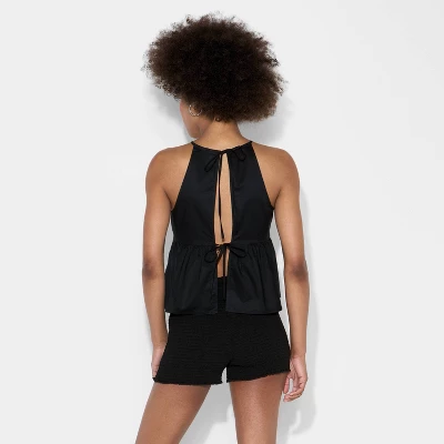 High-neck babydoll top from Wild Fable™ features a halter-neck design with keyhole detailing at the back. Tailored of cotton-recycled cotton fabric in a fitted fit for comfortable wear. Lightweight design with back tie offers a nice, secure fit.