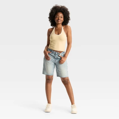 Interlock halter tank top from Wild Fable™ with a scoop neckline and halter straps with behind-the-neck ties. Tailored in a contemporary-fit silhouette with a cropped length. Made from midweight cotton with spandex for breathable, flexible wear that moves with you.