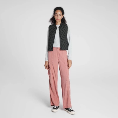 This stylish quilted vest features a ribbed knit collar and front slant pockets for added functionality. The quilted fabric, enhanced by a novelty embroidery technique, offers a modern touch. Available in classic solid colors and trendy leopard print, it’s the perfect layering piece for any outfit.