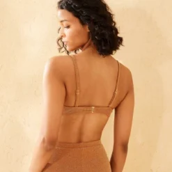 Lurex scooped bralette bikini top from Wild Fable™ in a sparkly finish. Made from nylon-spandex blend with metallic fibers for a touch of shine and full lining for comfortable wear. Adjustable straps with buckles and a back strap with hook fastening provide a stay-put fit. Removable cups provide customizable coverage.